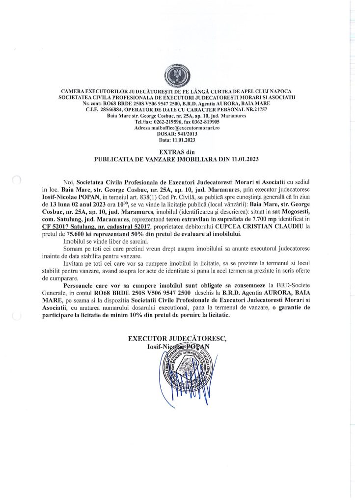 Vânzare teren extravilan în Mogoșești – Extras publicație imobiliară, din data de 11. 01. 2023