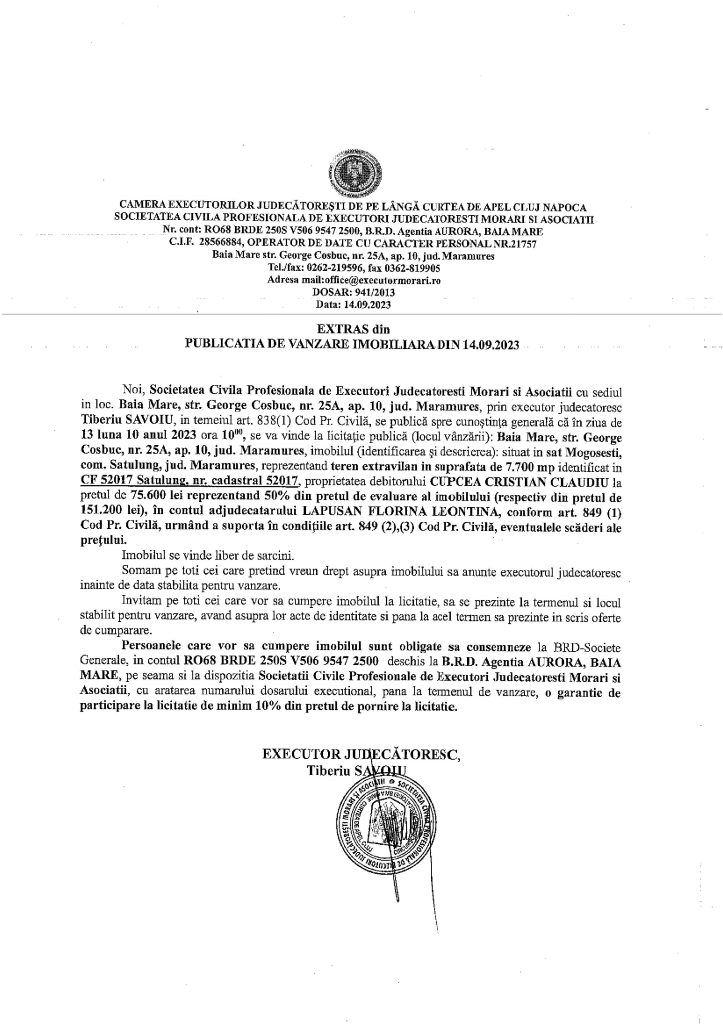 Vânzare teren extravilan în Mogoșești – Extras publicație imobiliară, din data de 14. 09. 2023