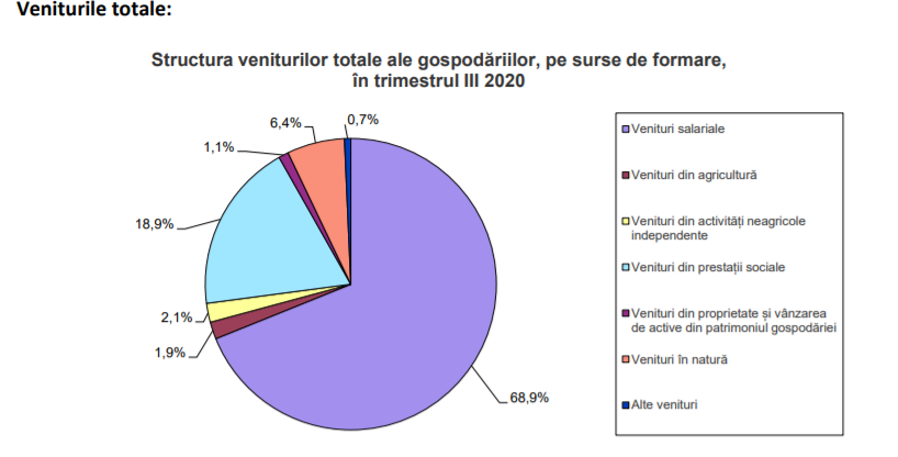 salariile şi celelalte venituri asociate lor au format cea mai importantă sursă de venituri (68,9% din totalul veniturilor gospodăriilor);