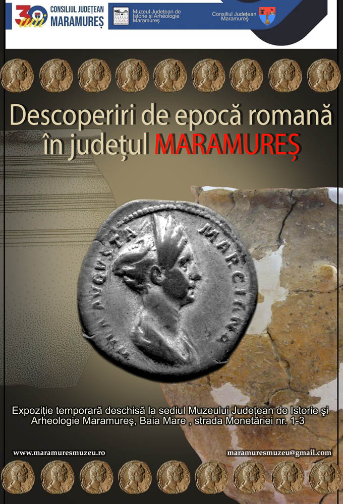 Expoziția temporară Descoperiri de epocă romană în județul Maramureș dorește să popularizeze în rândul publicului larg cele mai importante descoperiri de epocă romană de pe teritoriul județului Maramureș, fiind expuse piese descoperite în cadrul diverselor cercetări arheologice desfășurate în județ de-a lungul timpului, precum și piese descoperite întâmplător.