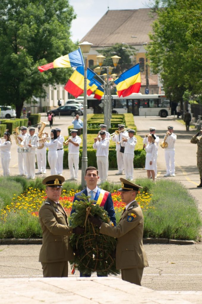 “Sunt profund recunoscător militarilor români căzuți pe câmpul de luptă, militarilor în rezervă, dar și celor care astăzi sunt la datorie și apără libertatea și unitatea poporului.