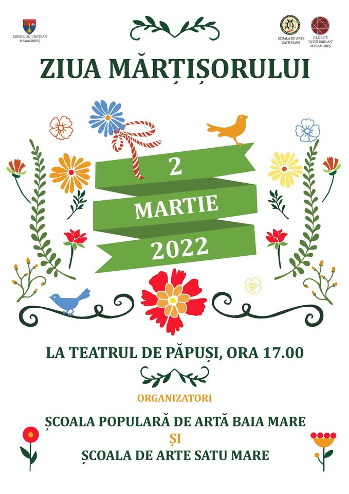 Consiliul Județean Maramureș prin Centrul Județean pentru Conservarea și Promovarea Culturii Tradiționale ”Liviu Borlan” Maramureș vă invită la un eveniment cultural-artistic dedicat începutului de primăvară.
